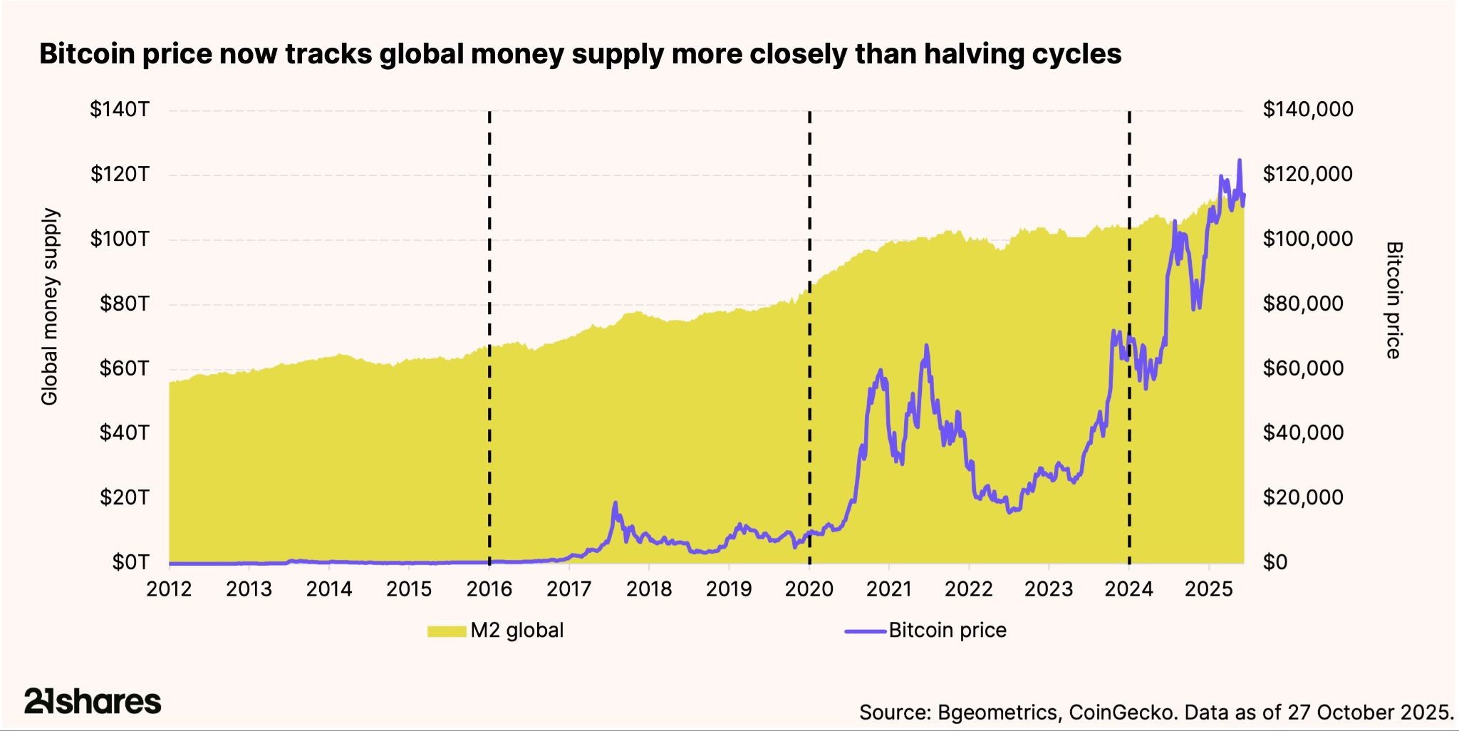 The halving still holds psychological weight, but its influence is fading amid stronger macro and liquidity dynamics. The familiar boom-and-bust pattern may be giving way to a new era, one defined by steadier growth, institutional maturity, and global macro trends rather than retail euphoria.