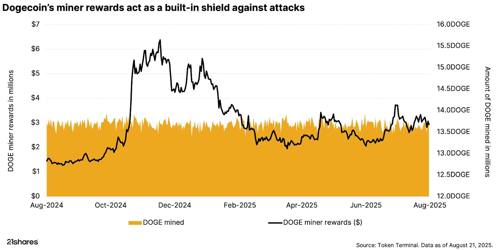 - Community loyalty: Dogecoin’s grassroots culture, which helped it grow from meme to movement, makes mass defection culturally unlikely, particularly seeing as miners have enjoyed over 1B USD in block rewards over the last year.