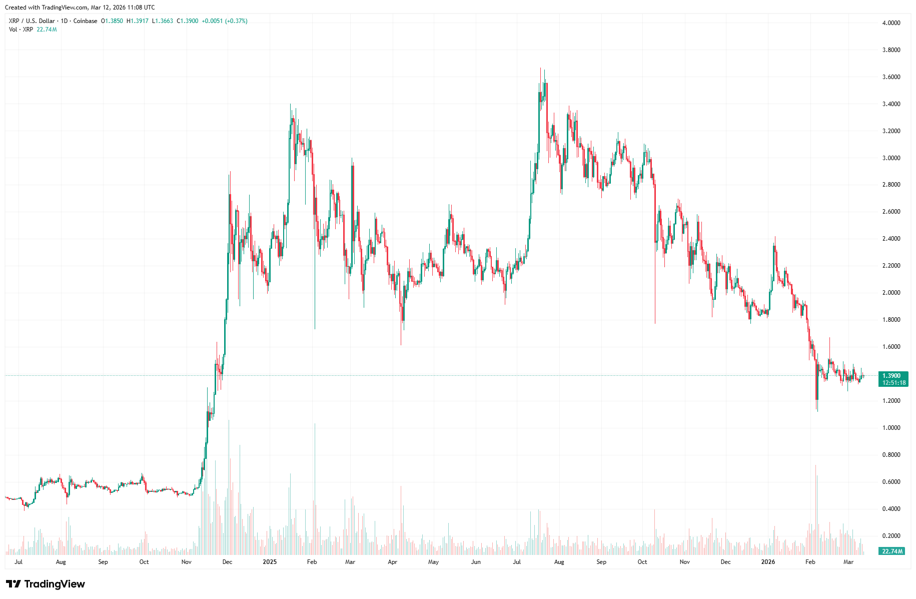 While Ripple as a company sets new valuation records, the associated token XRP paints a different picture. The price sits at around $1.39. Since its all-time high of roughly $3.56 in July 2025, it has lost over 60 percent. The ratio between the two valuations is striking. XRP's market capitalization currently stands at around $84 billion. Meanwhile, Ripple's enterprise valuation of $50 billion is increasingly approaching that mark. A significant portion of Ripple's enterprise value is based on the company's XRP holdings. Ripple holds billions of tokens, a large share of them in an escrow mechanism that releases tranches monthly.