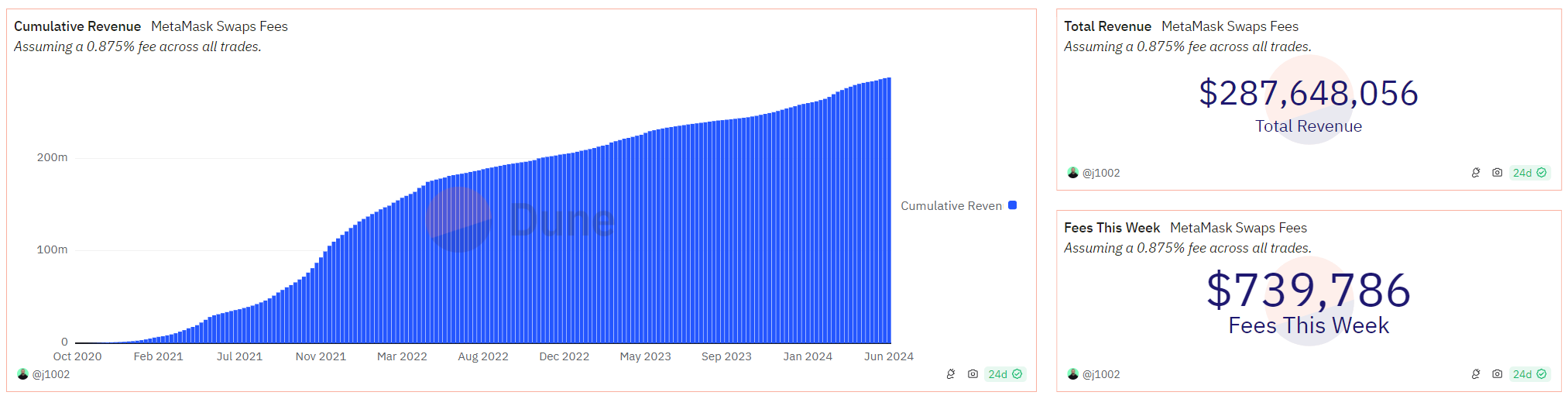 Consensys revenue from MetaMask swap fee / Source: Dune