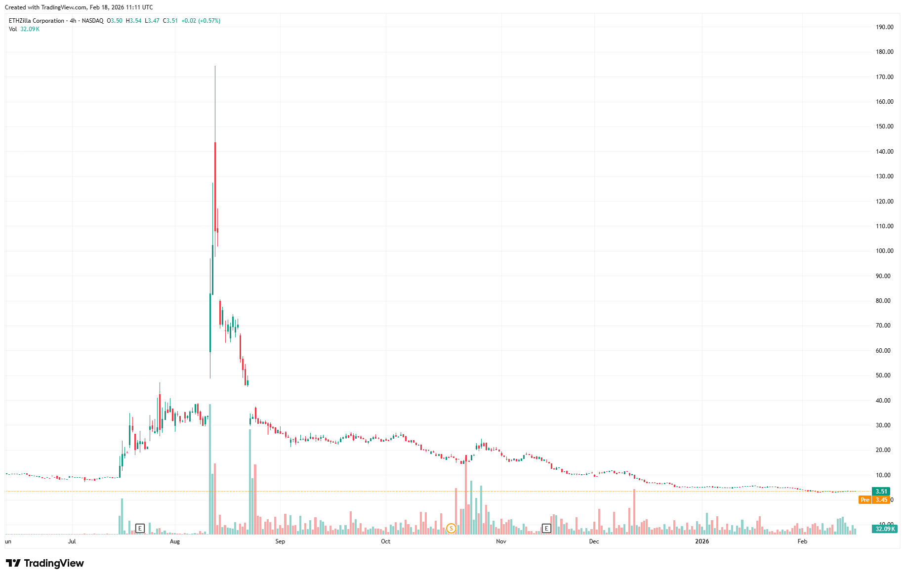 Previously, Thiel and affiliated Founders Fund entities controlled 11,592,241 shares, representing a 7.5 percent stake. This position carried an estimated value of around $40 million. Entry came in August 2025, with full disposal completed by end of December 2025. In total, the engagement lasted just four months. ETHZ shares fell to around $3.20 in pre-market trading on February 18, down roughly 9 percent from the previous close.