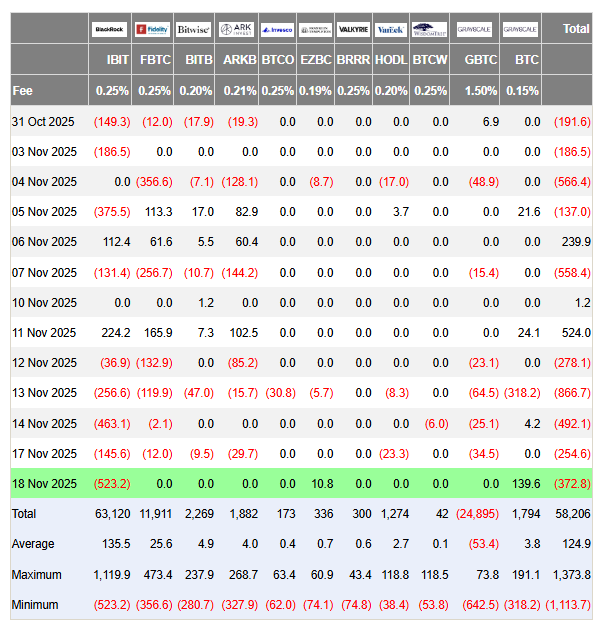 The US spot Bitcoin ETFs offered no support either. Since the start of the downturn on October 29, more than four billion USD have flowed out of the funds. These outflows likely accelerated the price slump. Sentiment remains weak, weighed down by falling equity markets and growing skepticism toward a potential AI bubble.