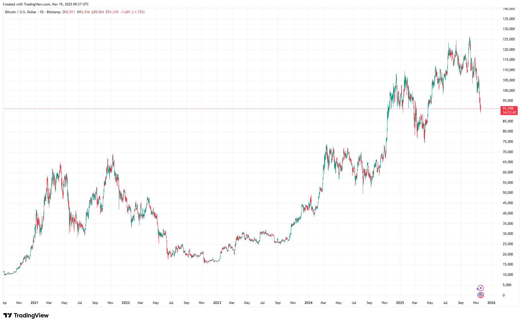 After the billion-dollar liquidation cascades of recent weeks, the Bitcoin price has found no stable footing. The 100,000 USD level broke without resistance. The price continued to drop below 90,000 USD – a decline of 27% from the all-time high. Bitcoin is now trading at levels last seen shortly after Trump’s election victory.